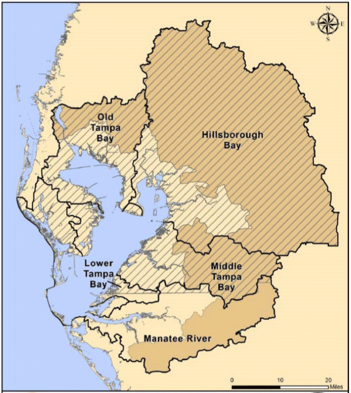 The Tampa Bay Estuary Program (TBEP) and the Southwest Florida Water Management District (SWFWMD) entered into a cooperative agreement to develop an integrated model system to evaluate potential management actions aimed at improving water quality, sediment conditions, and seagrass coverage extent in Old Tampa Bay (OTB). The OTB segment of Tampa Bay has been identified as an area of primary concern through several TBEP research initiatives and technical advisory committee recommendations. Unlike the other major bay segments of Tampa Bay, periodic poor water quality conditions, sediment accumulation, and limited seagrass expansion are still observed in OTB. The primary objectives of this project were to develop an integrated model system for the OTB estuarine system and drainage areas, and to use this system to predict and evaluate environmental responses that may result from the implementation of management actions represented in the model scenarios developed for this project. Given these objectives it became very clear that a mechanistic modeling approach was necessary to predict responses in the OTB to any of a series of potential management actions. The INTB model was used to provide freshwater flow inputs to the OTB. Also, the INTB model was modified to add capability to simulate water quality loading embedded within the freshwater flow to the OTB. An analysis of net environmental benefits and an assessment of relative costs was completed for various potential management actions. (summary taken from: Janicki, Inc. 2015. “Old Tampa Bay Integrated Model Development Project Executive Summary.” Prepared for the Tampa Bay Estuary Program). Click here to read/download report (5 MB)